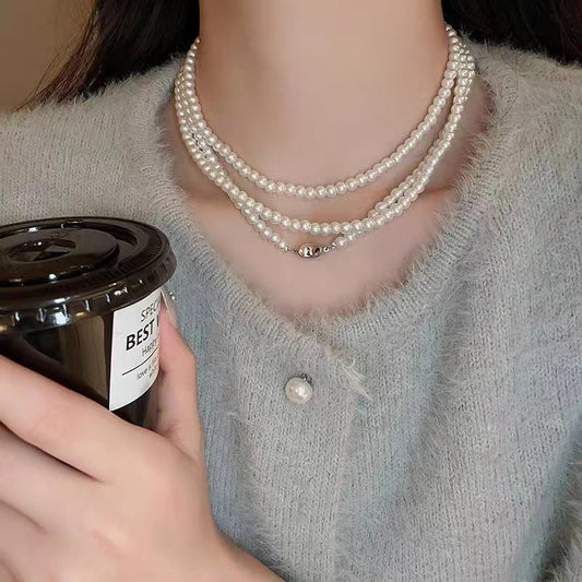 Knot Pearl Long Necklace Multi-layer Stackable