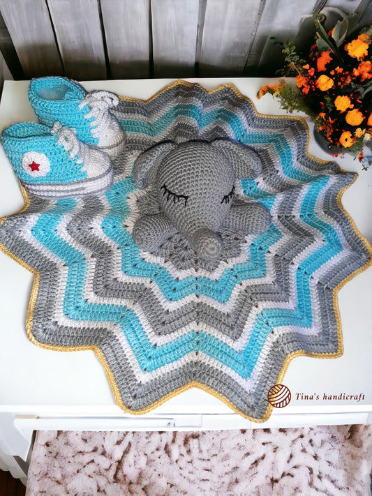 Set for newborn baby, blanket,cuddly blanket and crochet slippers