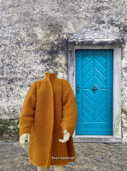 Handmade Mustard Wool Cardigan | Textured Knit Coat | Custom Colors S-5XL