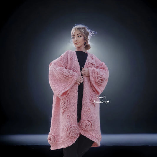 Women's Mohair Yarn Cardigan with 3D Flowers