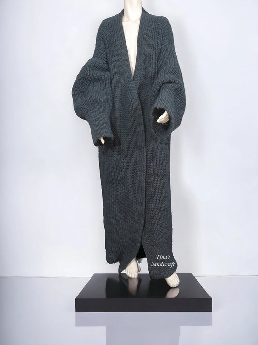 "Wide Long Cardigan with Loose Knit and Modern Style"