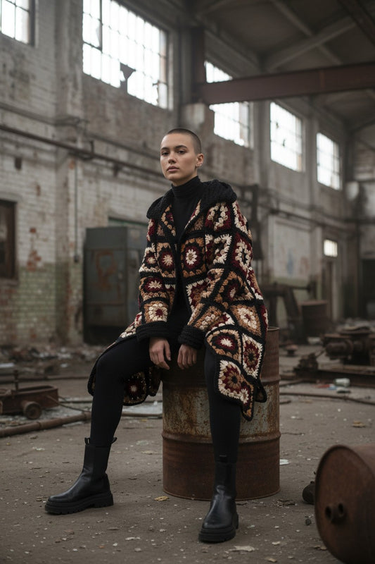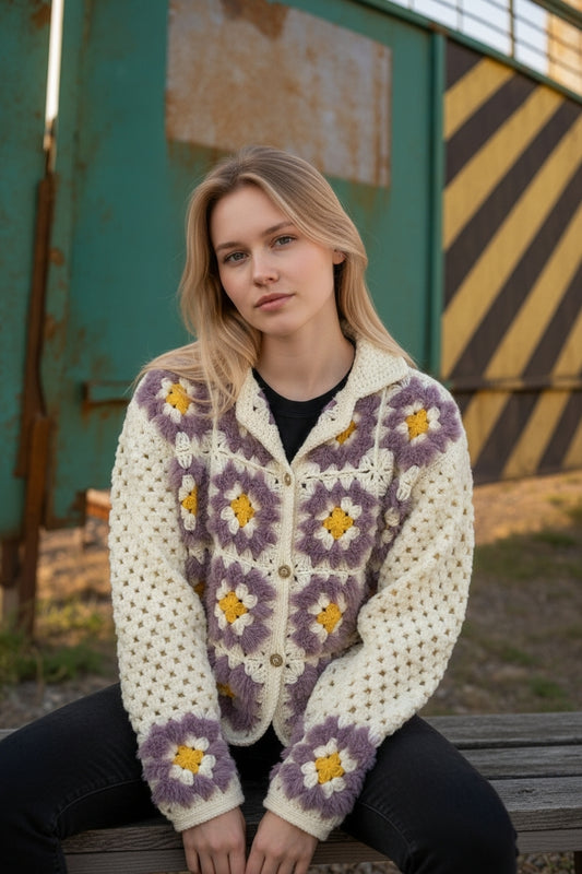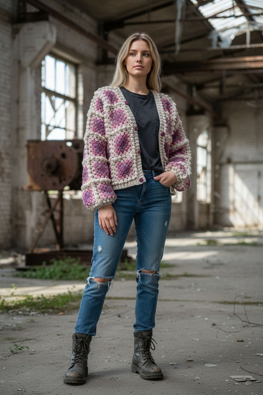 "Embrace Comfort" Boho Cardigan with Granny Square Patterns