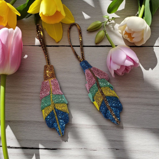 Handmade Glitter Leaf Christmas Ornaments - Set of Sparkling Holiday Decorations , gift ideas