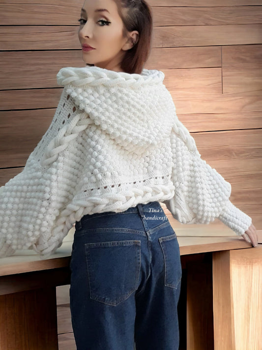 Handmade Knitted Hoodie poncho