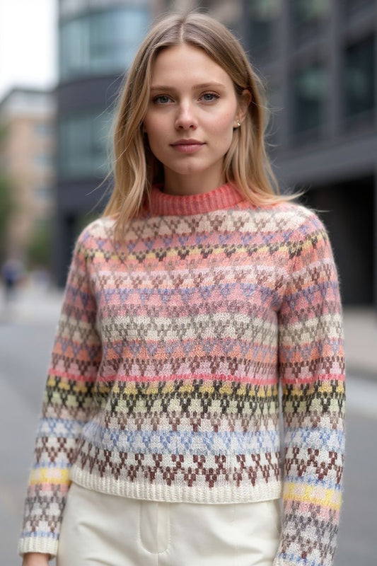 Handmade Fair Isle Sweater | Pastel Multi-Color | Cropped Wool Knit S-5XL