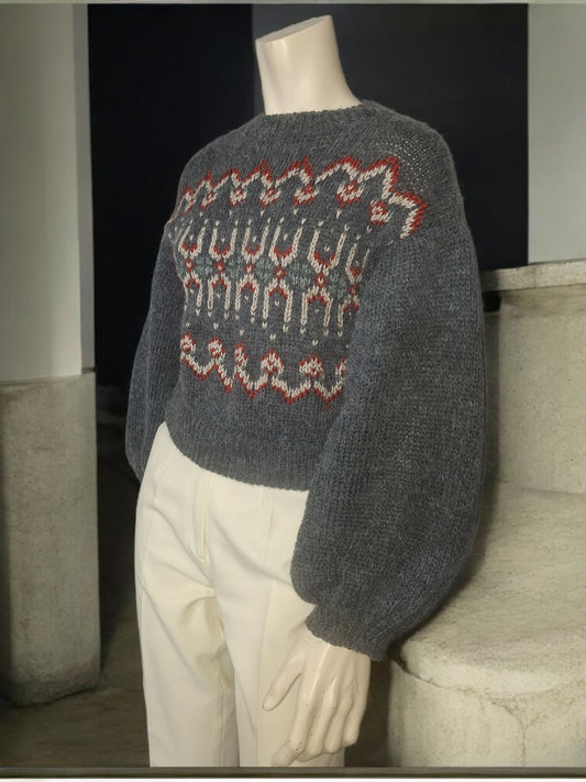 Fair Isle Yoke Sweater Mohair Blend with Balloon Sleeves