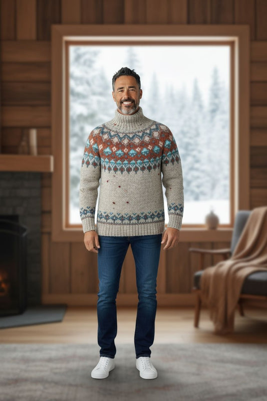 Handmade Fair Isle Turtleneck Sweater | Nordic Wool | Custom Colors S-5XL
