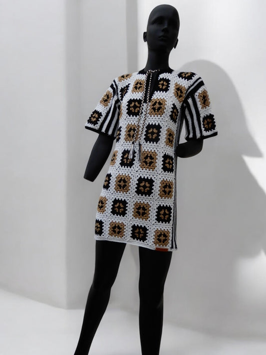 Häkeldecke mit Granny Squares-Motiven, Blumen und Kissen