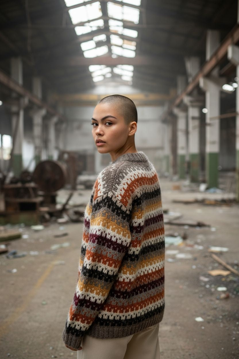 Einzigartige Kombination aus horizontalen Streifen und Fair-Isle-Mustern.