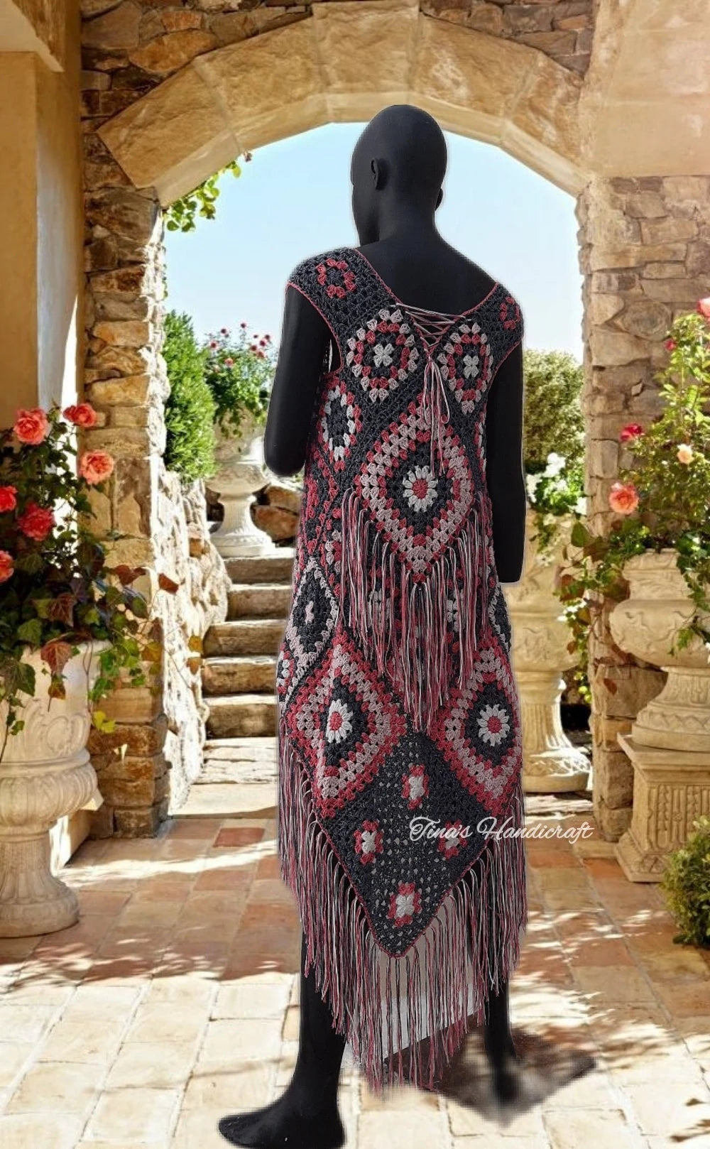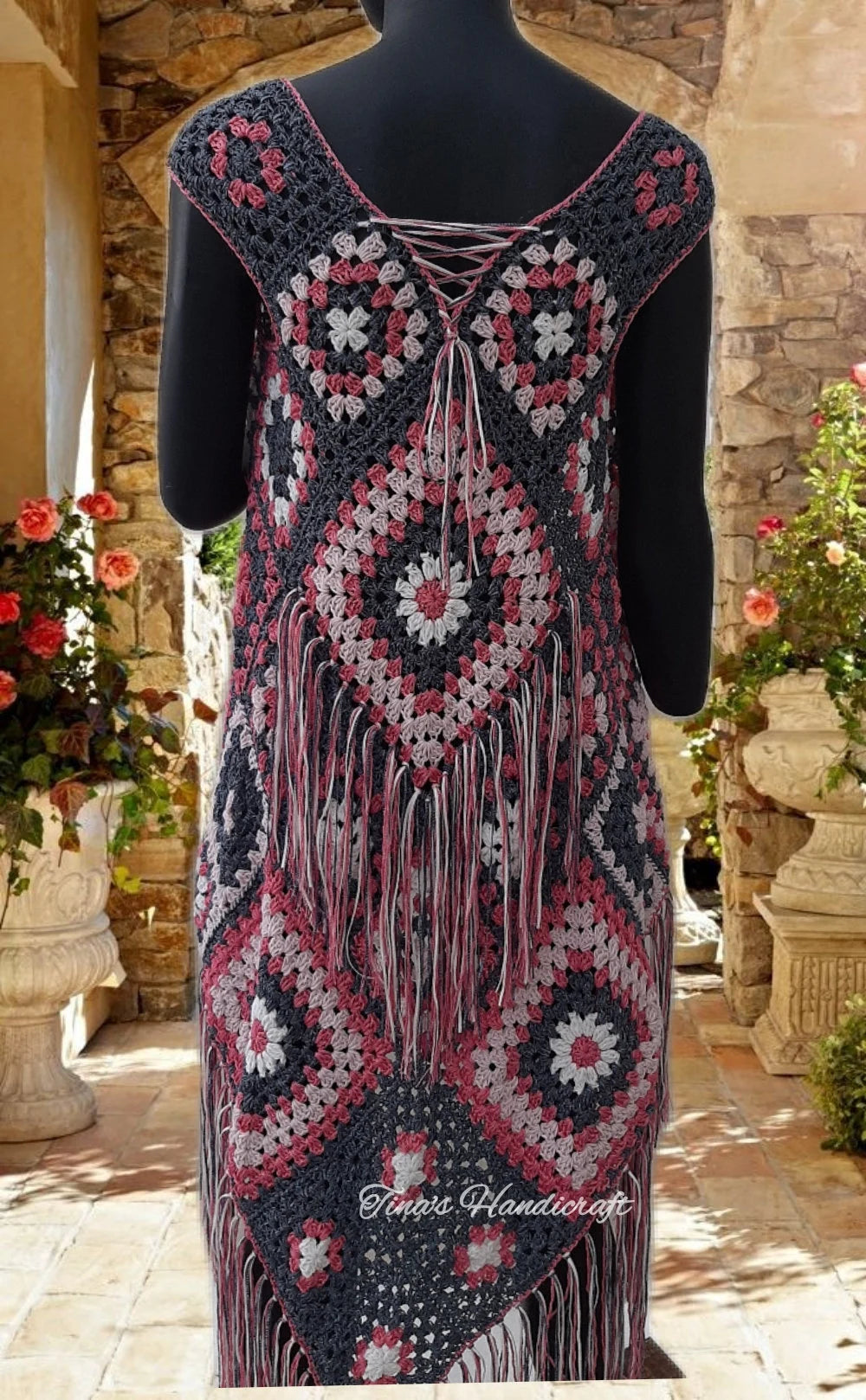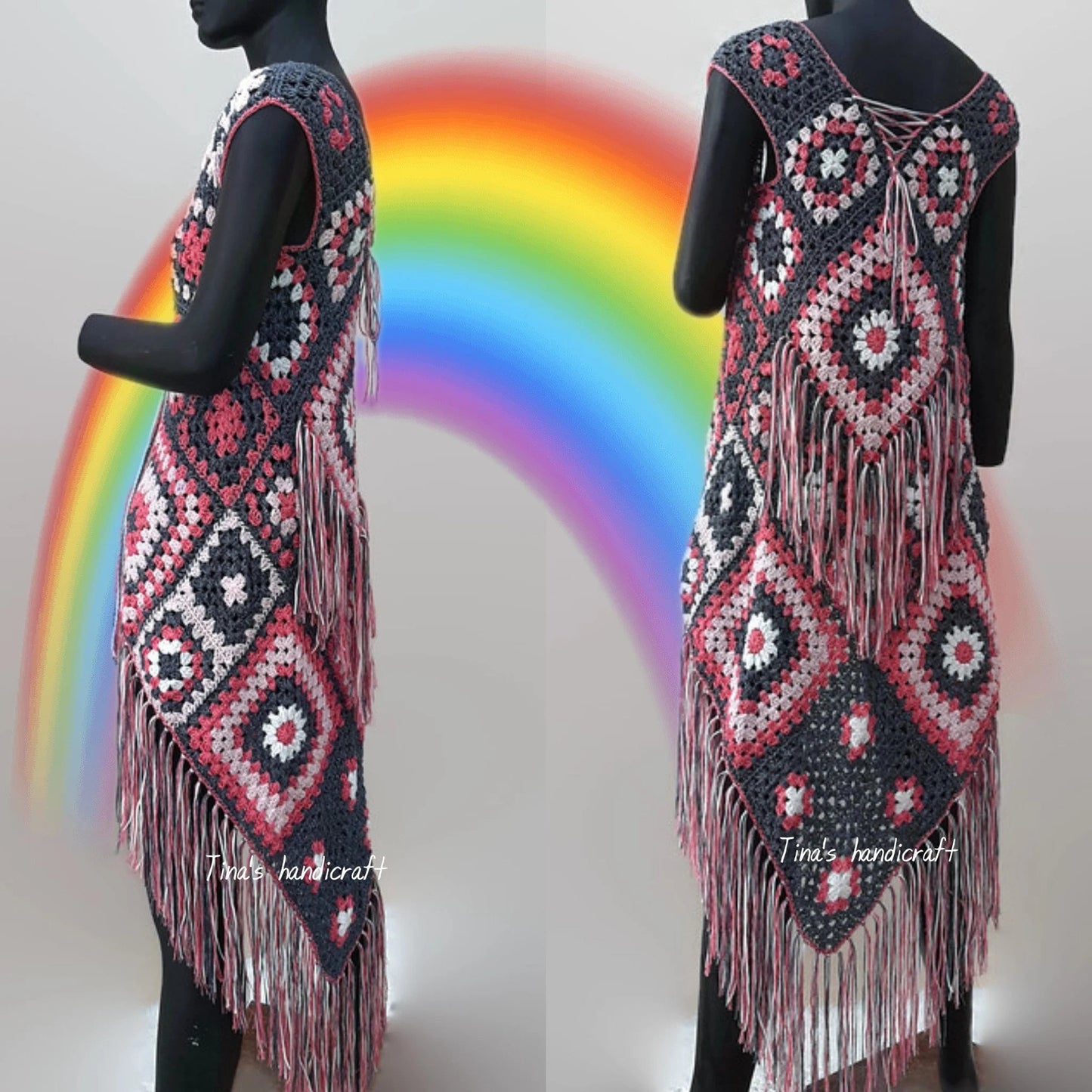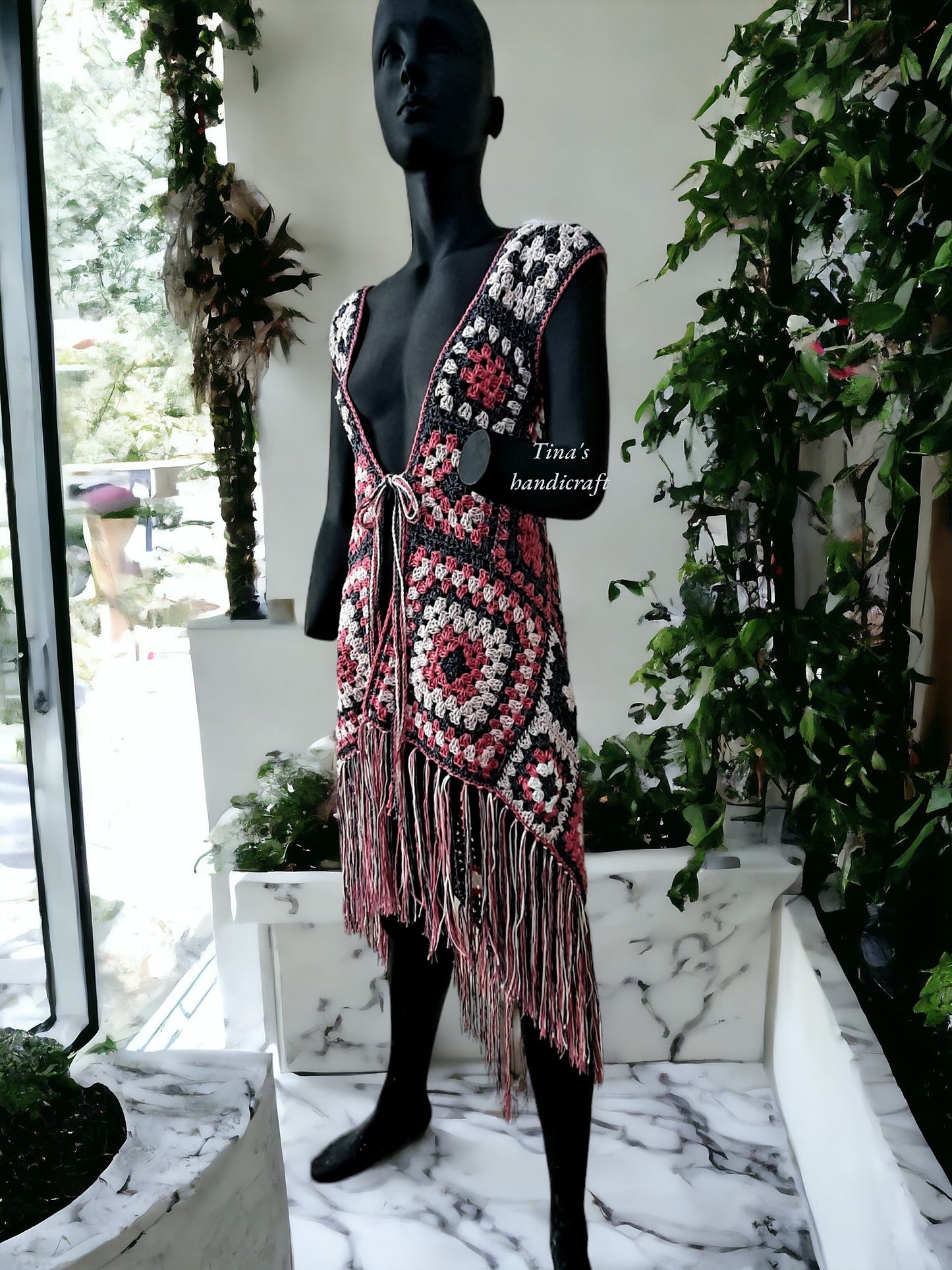 Dieser atemberaubende, handgefertigte Bolero ist ein wahres Kunstwerk, inspiriert vom freien Geist des Boho-Chics. Mit Liebe und Liebe zum Detail gefertigt, verbindet er Komfort mit Eleganz und schafft ein einzigartiges Stück, das die Show stehlen wird.