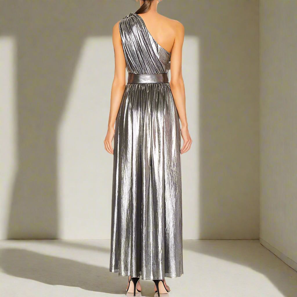 Damen Sexy Schlitz Gürtel Aushöhlen Einfarbig Bankett Cocktail Party Schräger Kragen Ärmelloses Partykleid