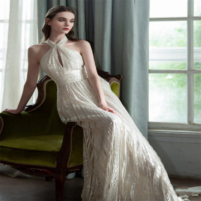 Σαμπανιζέ Χρώμα Παρουσιαστής Starry Sky Toast Ρούχα Halter Μοντέλο Πασαρέλα Επίδειξη