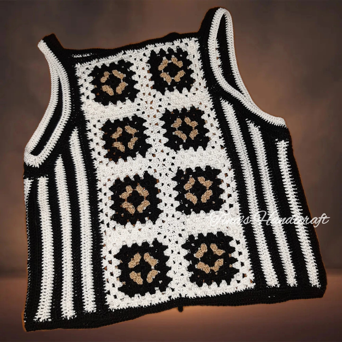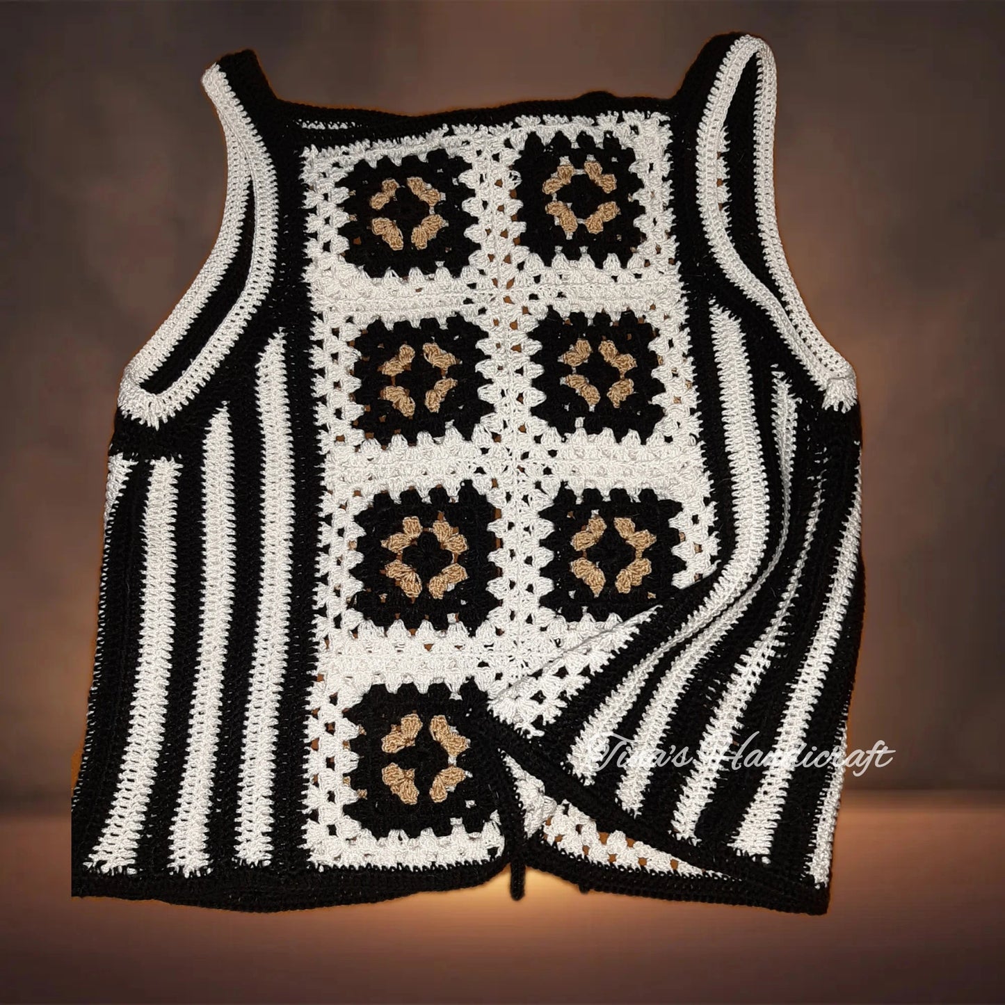 Μπλουζάκι με βελονάκι με μοτίβα τετράγωνα γιαγιά