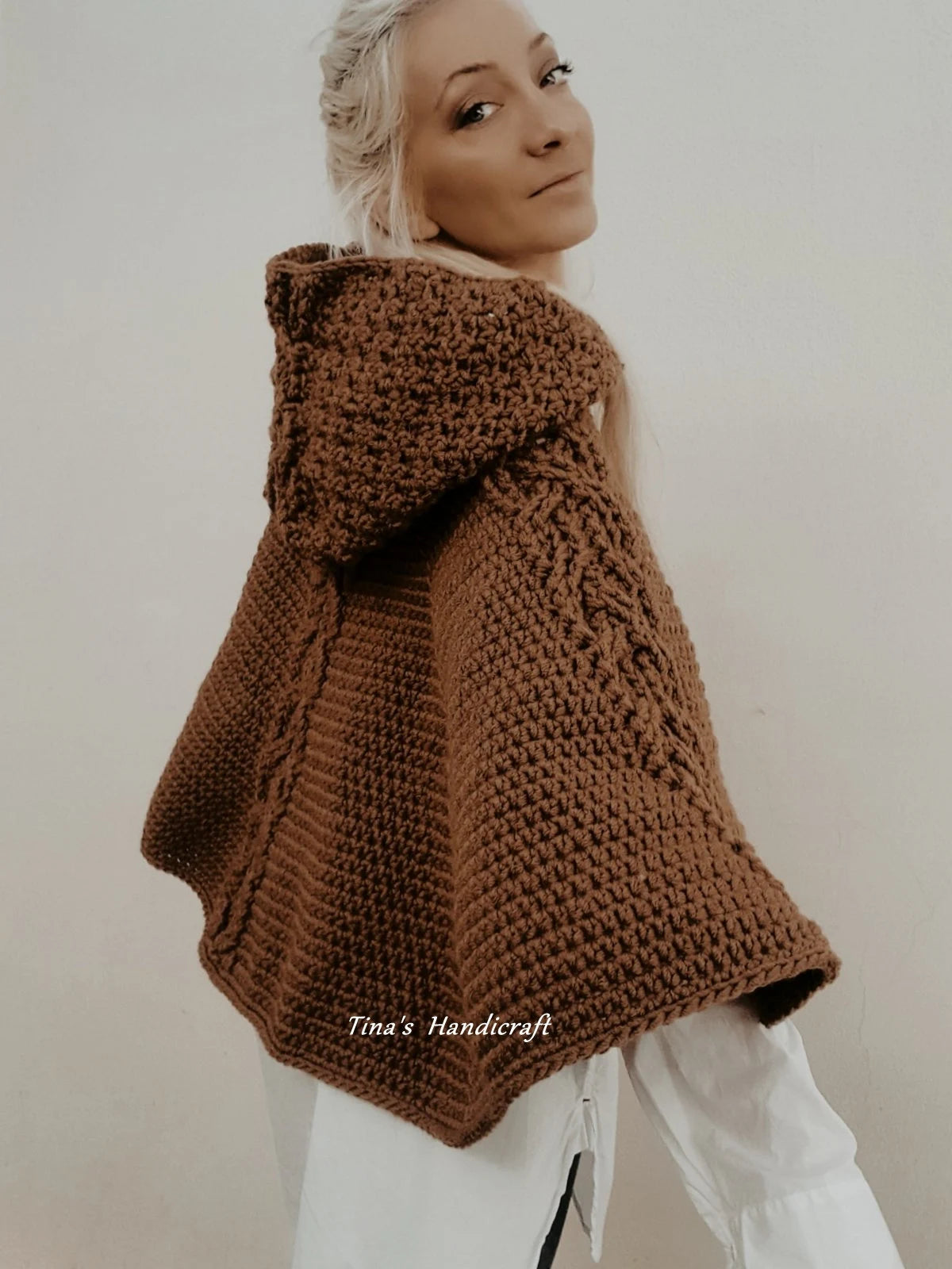 Each poncho is a unique work of art, handcrafted with love and care. The braided design is inspired by the tradition of knitting and makes it particularly eye-catching, while the hood adds a modern touch. It is the ideal gift for yourself or for a loved one.