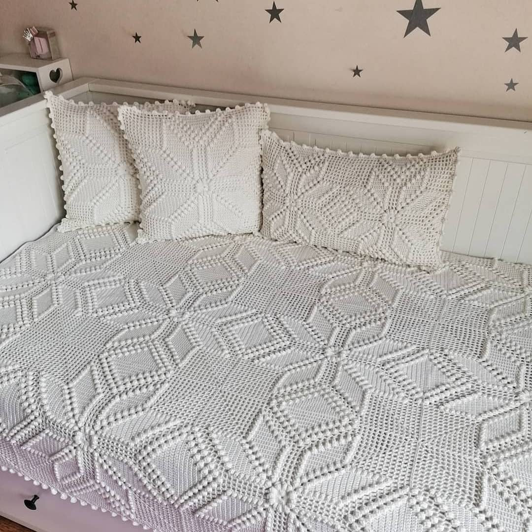 3- length 220 cm ,width 240cm for double bed 4- set of three decorative crochet pillows