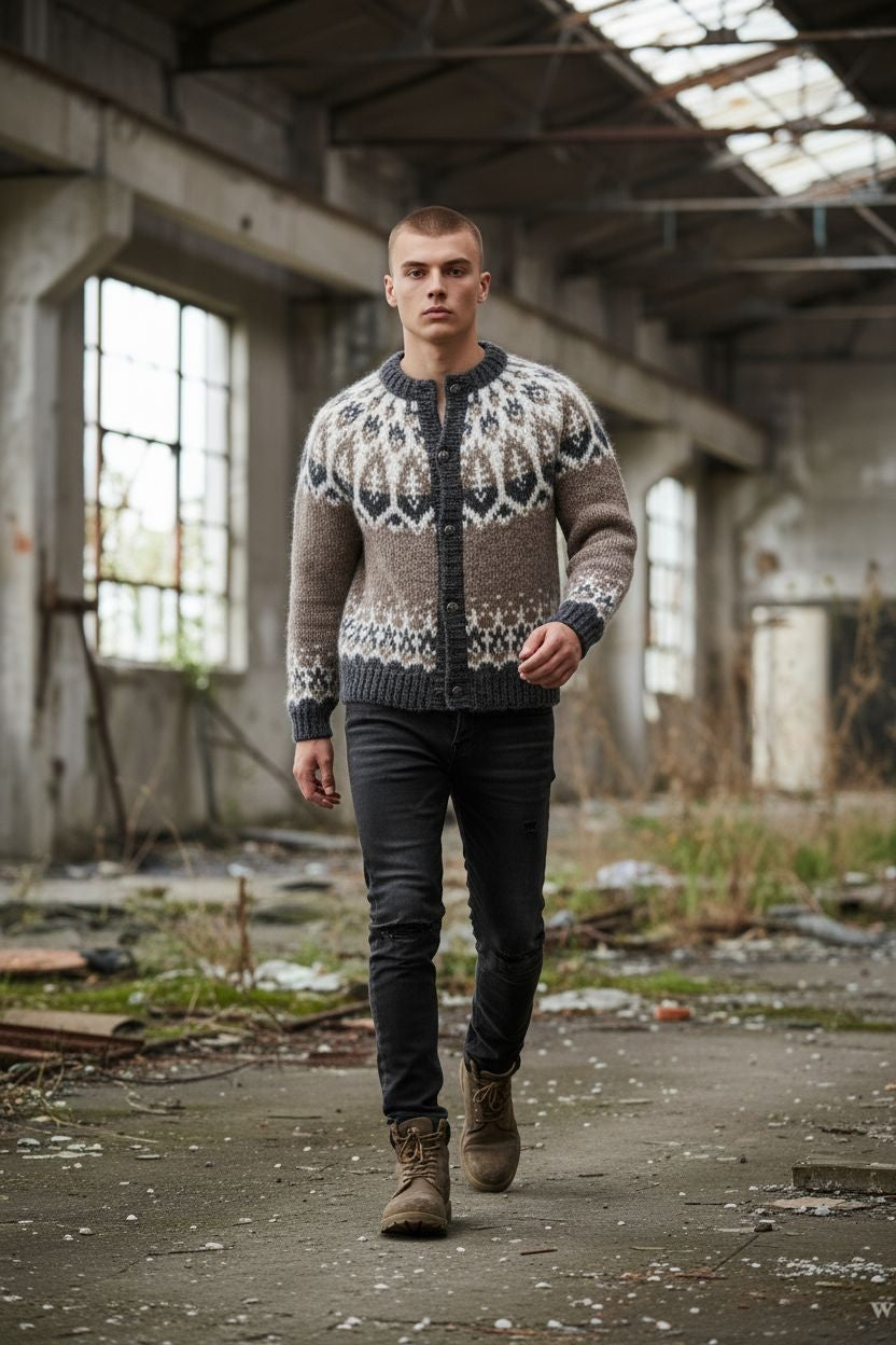 Smart Casual: Layer it over a light blue Oxford shirt and wear it with tailor-fit wool trousers or chinos instead of a blazer for a relaxed, creative office environment.