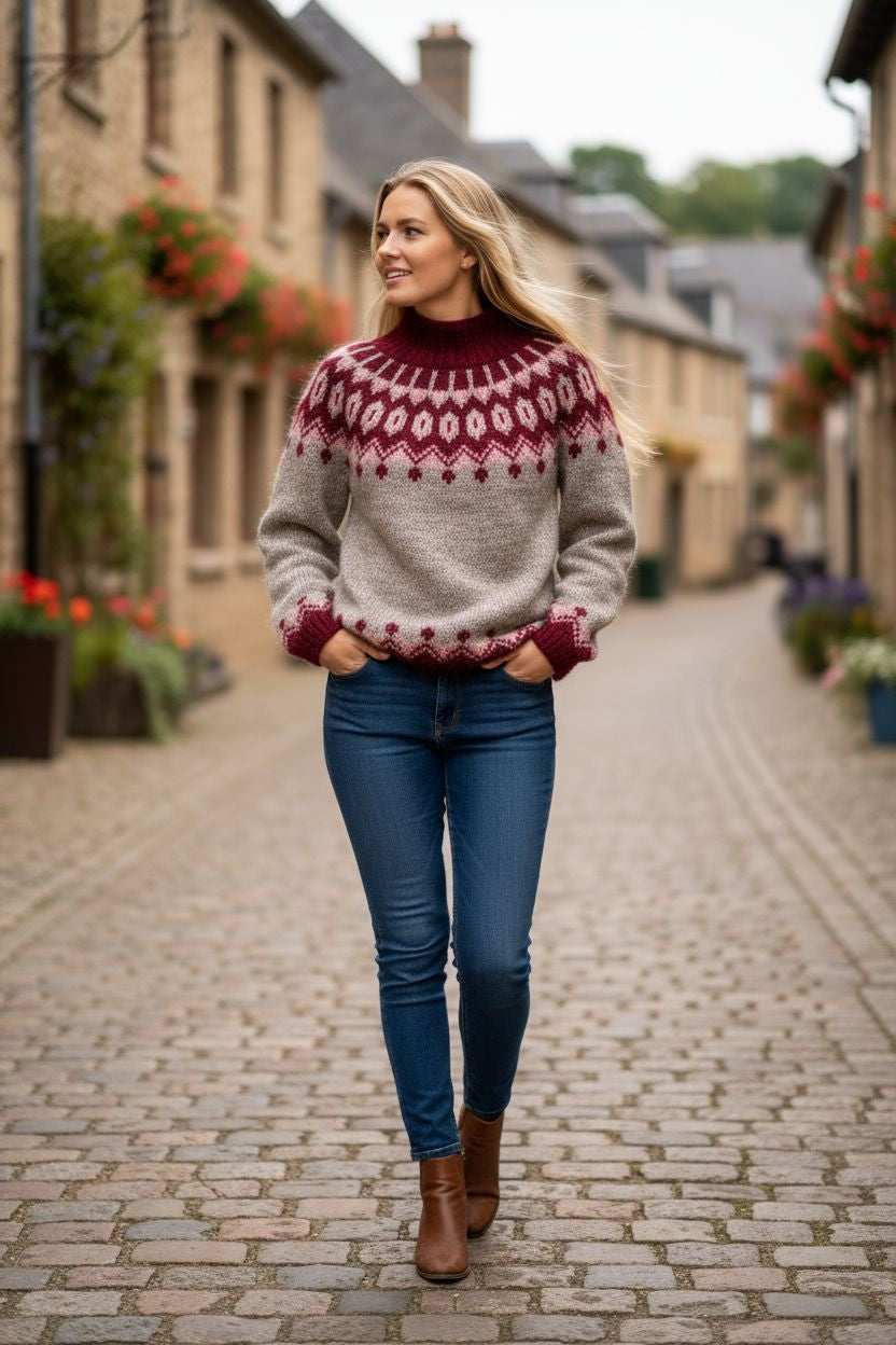 Care Instructions: Hand wash gently in cold water with wool-safe detergent. Lay flat to dry to preserve the beautiful Fair Isle patterns and shape.