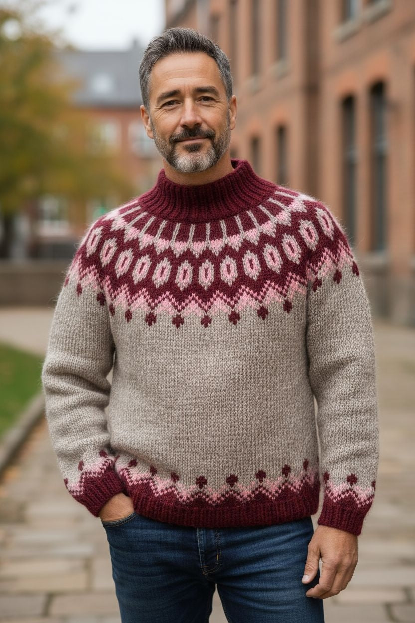 Handmade Icelandic Lopi Sweater | Burgundy Fair Isle | Unisex Wool S-5XL