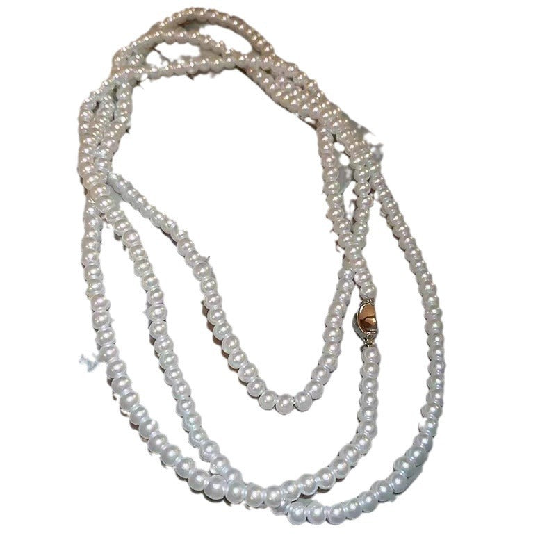 NK-135-6mm white glass Pearl Silver Ingot knot (150cm),