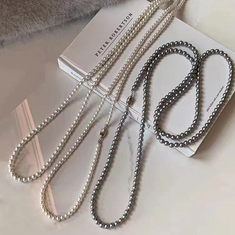 6mm gray glass Pearl Silver Ingot knot (150cm),