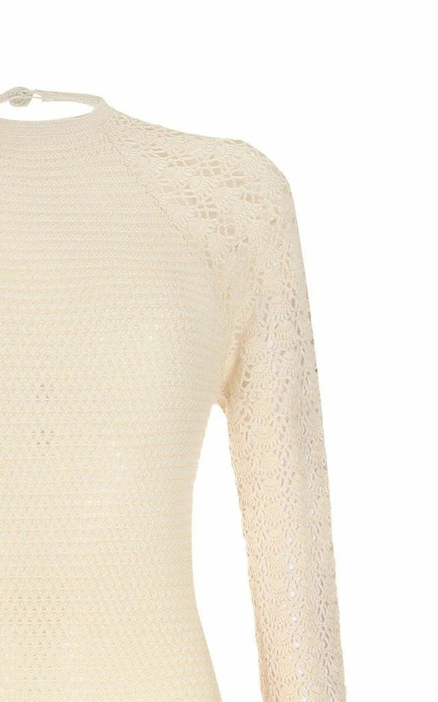 * Design: The main part of the dress has a simple, knitted design, while the sleeves feature a more elaborate, lacy design, adding a touch of sophistication.