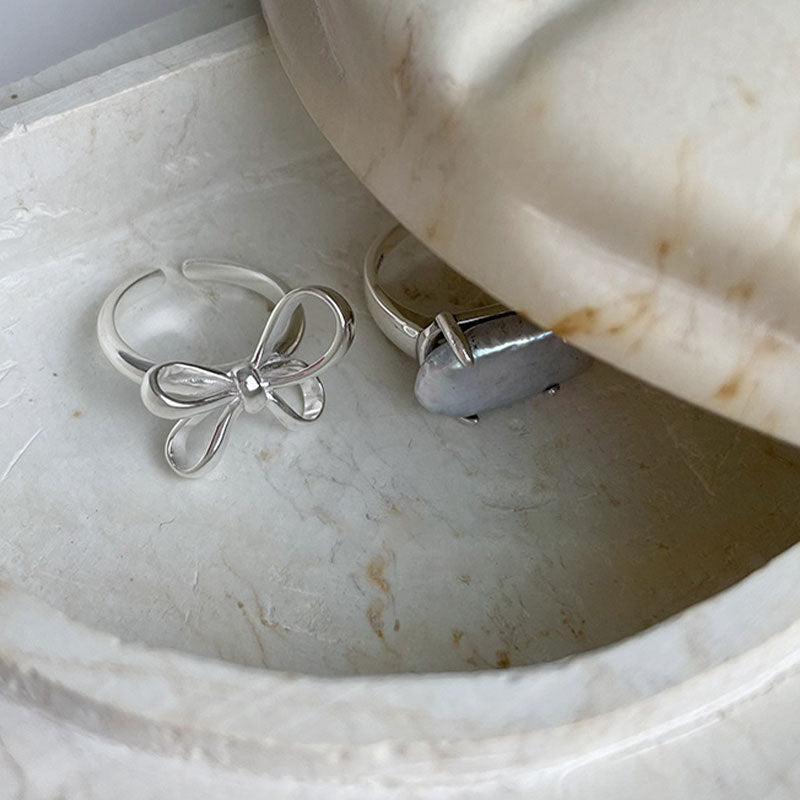 S925 Silver Simple Lines Bow Ring Women