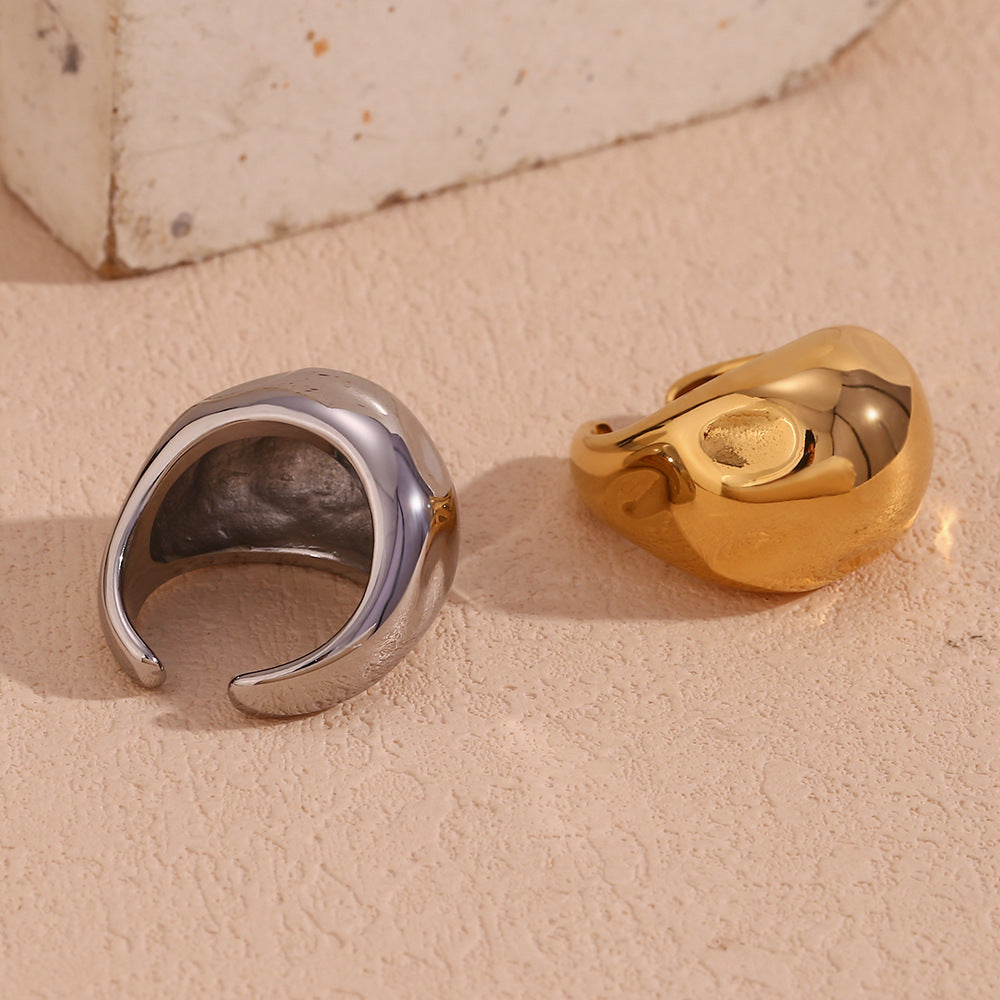 Stainless Steel 18K Gold Plating Beating Pattern Three-dimensional Spherical Open Ring Women